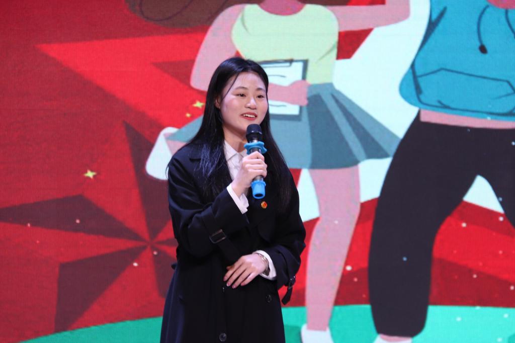 林静茹同学演讲的题目为《百年精神铭于心,坚定思想跟党行》,她在演讲中提到:作为学生会轮值主席、班级团支书,通过带领同学们学习习近平新时代中国特色社会主义思想,给我们青年学子指索了航向,让我们在逐梦中坚毅前行,激励着我们学好文化知识,关注社会发展,了解国家需求,努力把“个人梦”融入“国家梦”,将“小我”融入“大我”。