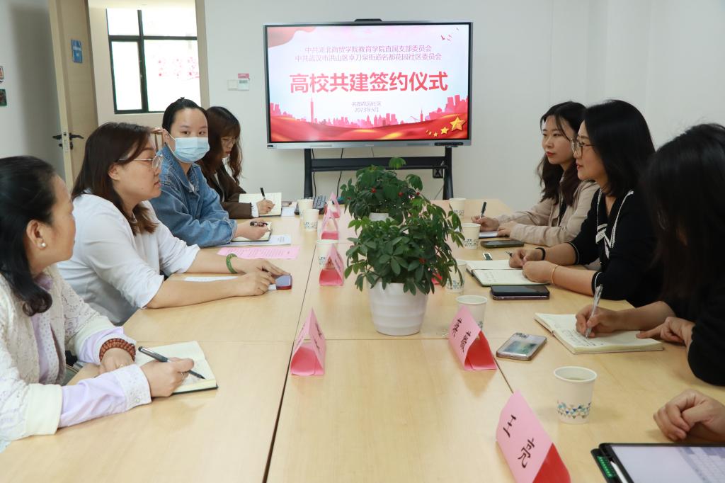 为进一步创新区域化党建联建,推动校社共建共育,提高学院党团建设水平。5月9日下午,教育学院直属党支部书记郑洁、分团委书记戴小雨、党务秘书蒋薇、团学助理王亮一行赴洪山区卓刀泉街道名都花园社区洽谈校社合作共建并完成签约授牌仪式,社区党总支书记张琦及其他党组织相关人员与会参加。